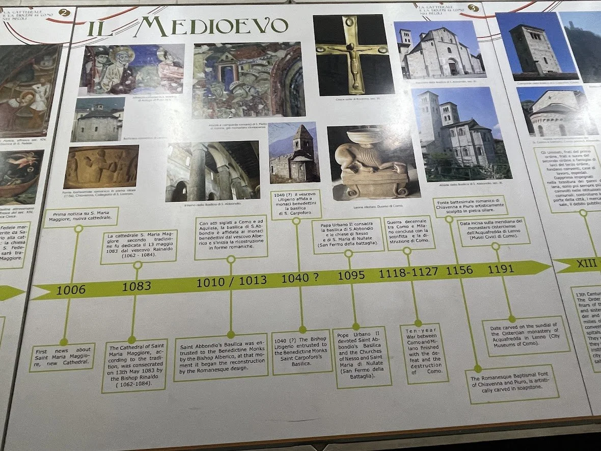 Overview of Como cathedral timeline: Each panel on their own had a good balance of text and graphic but by lining them up, side by side, they created a challenging reading environment. The judicious use of “white space” could have been employed better to eliminate the sense of busyness & clutter on the panel for easier comprehension.