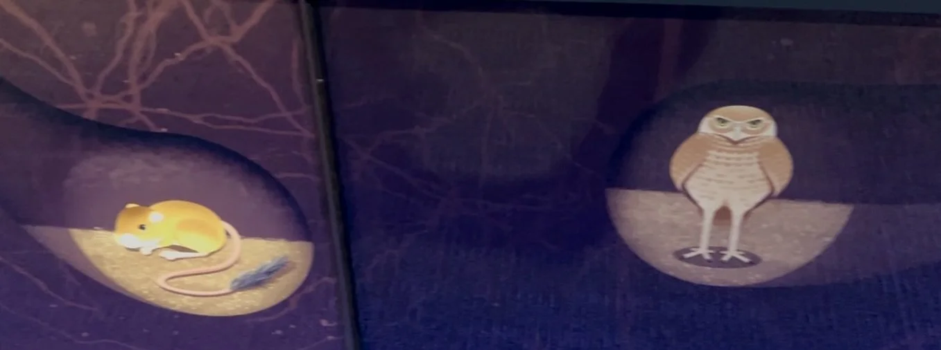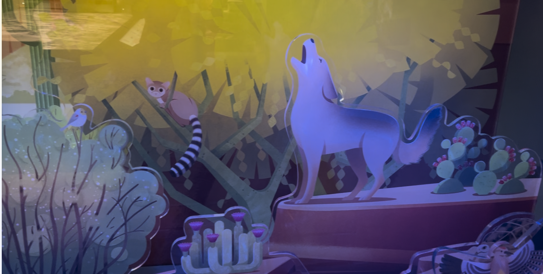 2. Sound is built into this display. There is a looped recording that provides the sounds of coyotes, cicadas, rattlesnakes, toads and even the sound of a summer monsoon storm.